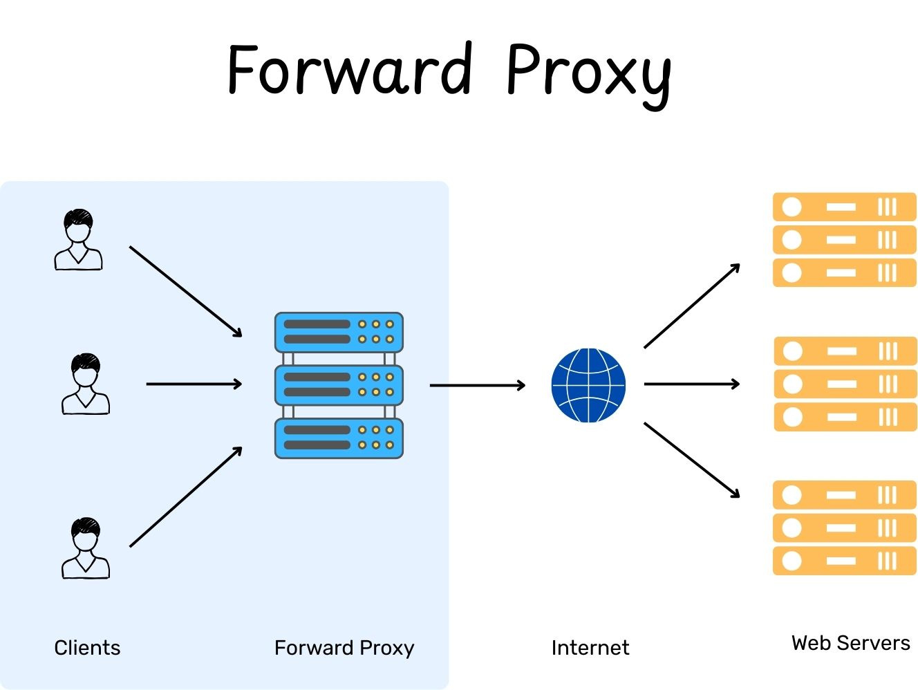 Anonymity: A forward proxy hides the client’s IP address from the destination server. Since the server only sees the proxy’s IP, it makes it much harder to track individual user activity or target specific clients for an attack.