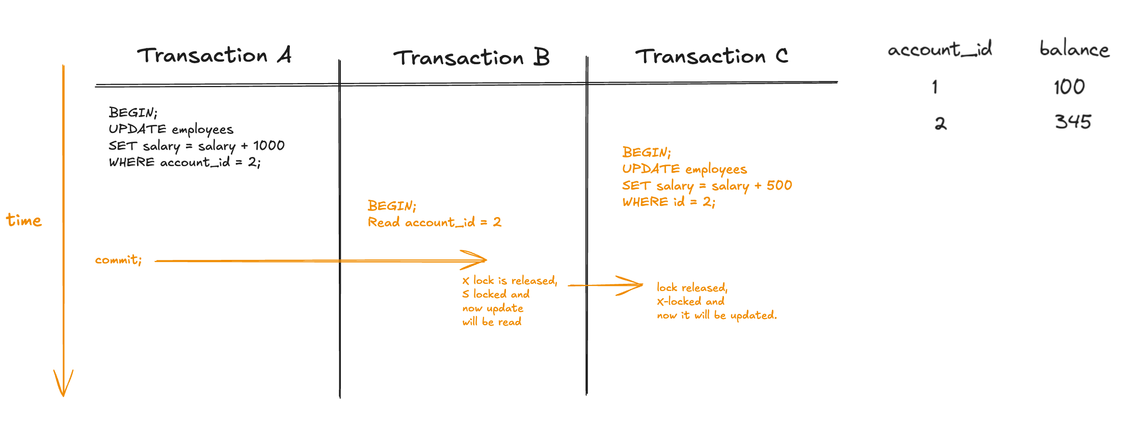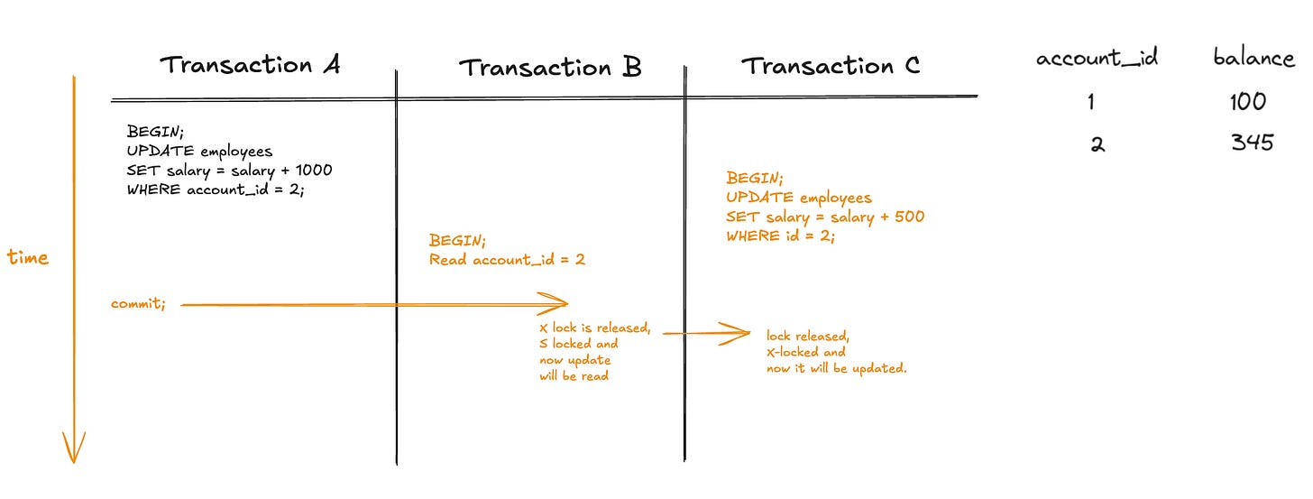 But once a transaction acquires an exclusive lock on a resource, other transactions must wait before they can read or write that same resource