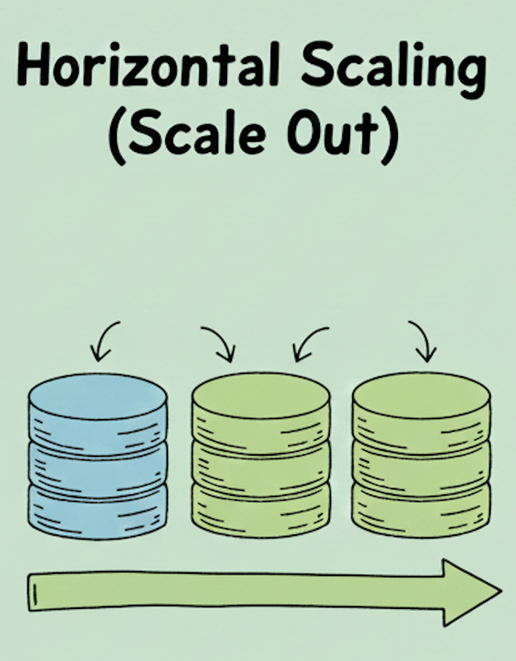 For backend services, horizontal scaling is simple: you add more app servers behind a load balancer, and any server can handle any request. The servers are mostly stateless, so it doesn’t really matter which one you hit.